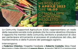 Le Comunity Supported Agriculture (CSA) rappresentano un nodo della nascente società civile globale che ha come obiettivo rifondare il rapporto fra i membri della comunità, territorio e produttori di cibo, per partecipare attivamente al processo di produzione del cibo, del mantenimento e della fruizione del paesaggio agrario.